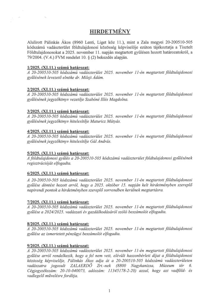 • Hirdetmény