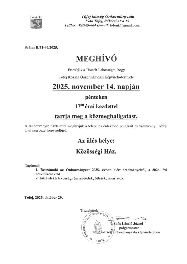 http://www.tofej.hu/wp-content/uploads/2021/11/tofej_cimer.png 0 0 Tófej Község http://www.tofej.hu/wp-content/uploads/2021/11/tofej_cimer.png Tófej Község2025-11-03 16:56:472025-11-03 16:56:47Közmeghallgatás