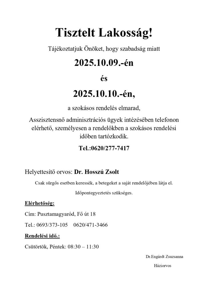 • Orvosi rendelés